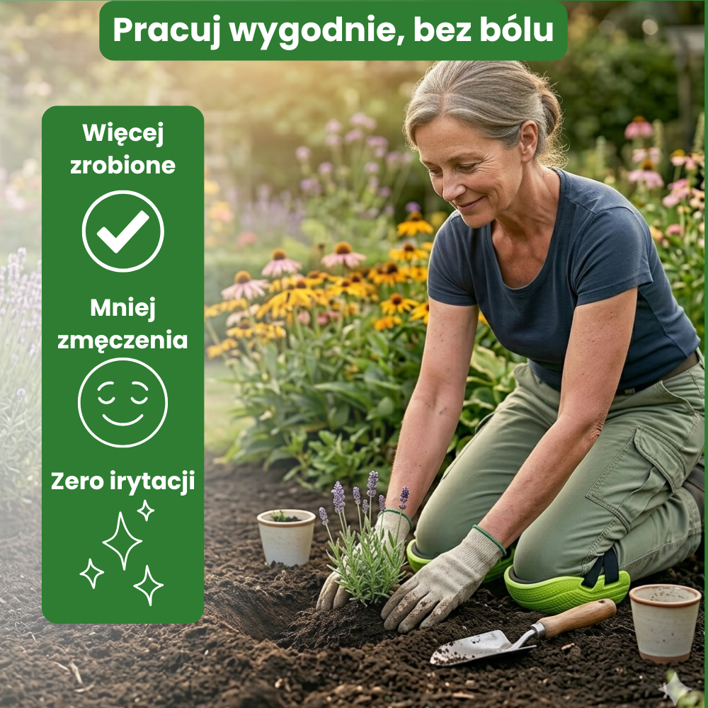Pracuj wygodnie nawet na twardej, zimnej i mokrej ziemi — bez dyskomfortu, bez ciągłego wstawania i bez skracania pracy przez ból.